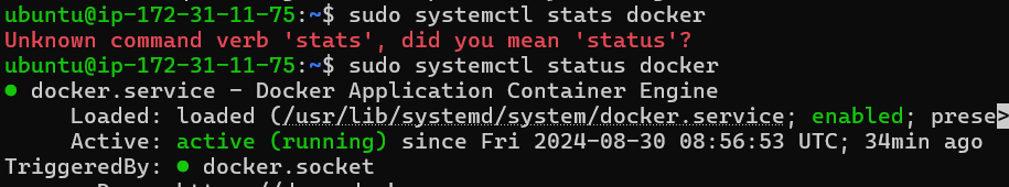 1. 먼저 도커 잘켜있나 살펴봄 > sudo systemctl status docker
