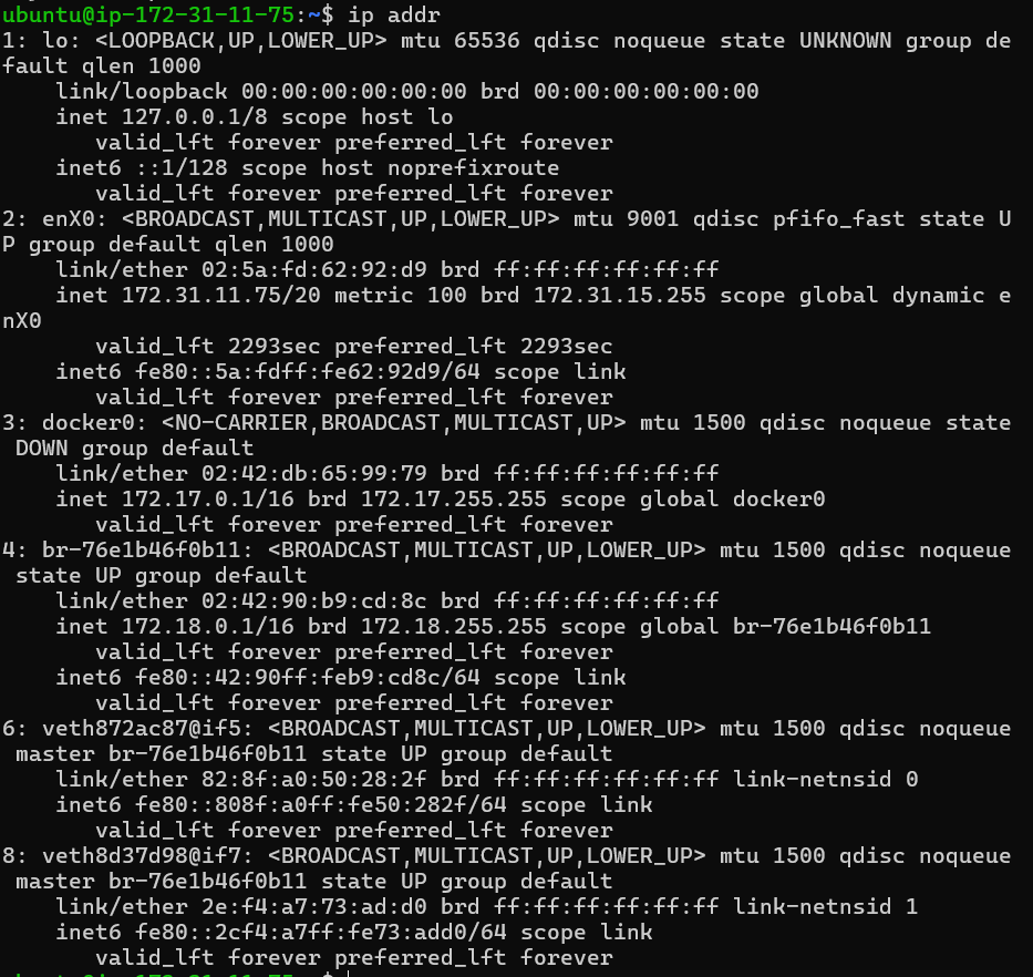 먼저 ip 주소도 한번 보고 > ip addr