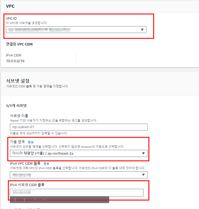 처음 생성해둔 VPC를 설정하여 생성하기 클릭