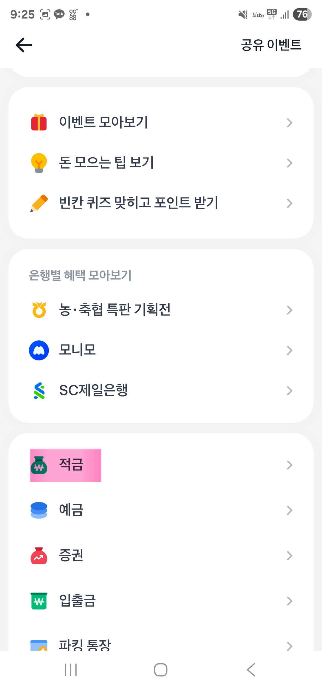 3. '적금' 클릭