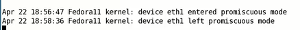 promiscuous 모드로 동작하게 되면 /var/log/messages 에 eth1 인터페이스가 promiscuous 모드로 전환되었음이 남는다.!!
